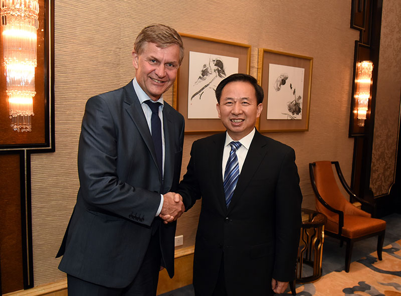 埃里克•索尔海姆对中国在全球环境治理进程中发挥的领导作用表示赞赏,他说,环境署高度重视中国在全球环境保护和可持续发展方面的地位和作用,中国提出的“一带一路”倡议正逐步成为全球共识,有利于推动沿线国家乃至国际社会绿色可持续发展技术的推广,环境署将努力发挥自身优势,支持“一带一路”绿色发展国际联盟。
