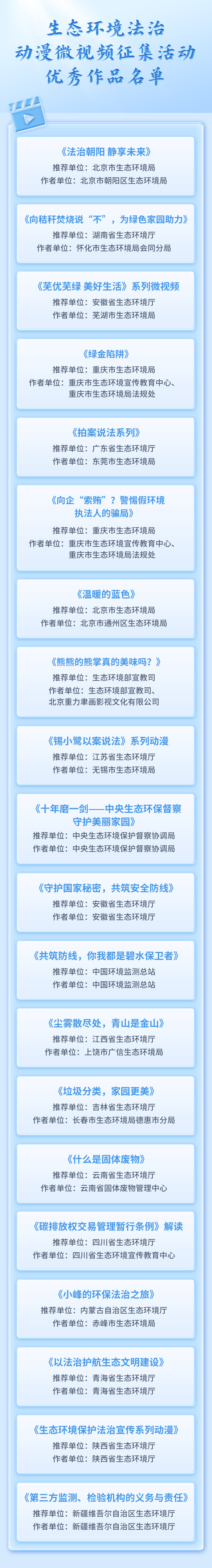 生态环境法治动漫微视频征集活动优秀作品名单