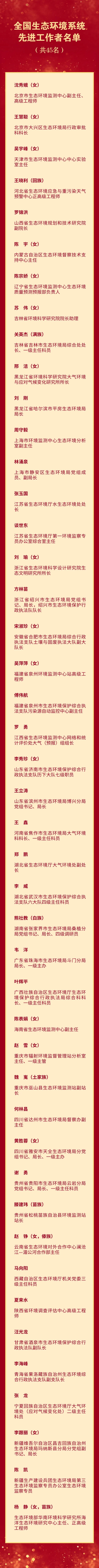 全国生态环境系统先进集体和先进工作者名单