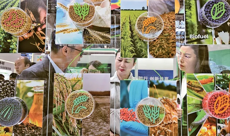 各地积极发展新质生产力,为高质量发展注入新动能、塑造新优势。图为2023年11月30日,在首届链博会绿色农业链展区,参观者在展台前了解种子研发情况。当日,这里聚焦农业产业链的核心环节、关键技术及产品,重点展示种子研发、智慧农业应用、现代智能化农机设备和富有地域特色的农业加工品,并配套展示农业相关的金融、物流等服务,为观众展现出一幅共创绿色农业未来的新图景。 新华社记者 李贺/摄