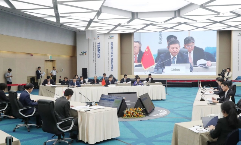 9月28日至29日,第二十五次中日韩环境部长会议在韩国济州举行。中国生态环境部部长黄润秋、韩国环境部部长金琓燮、日本环境省大臣伊藤信太郎分别率团出席会议,介绍本国环境政策及最新进展,并就区域和全球热点环境议题交换意见。会议审议了《中日韩环境合作联合行动计划(2021—2025)》实施情况,通过新一期联合行动计划优先合作领域,共同签署《第二十五次中日韩环境部长会议联合公报》。