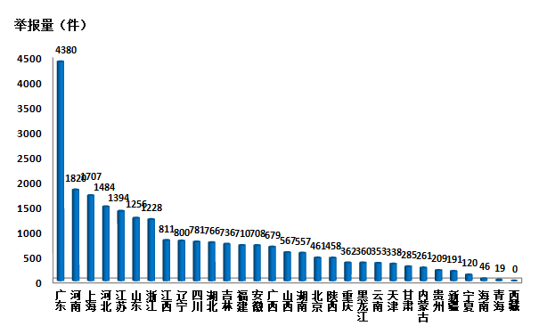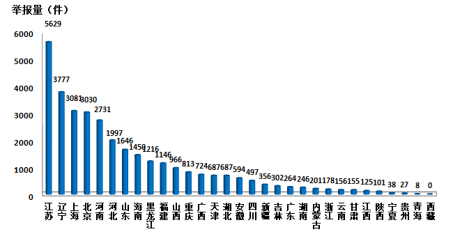表1 2018年6月微信举报量排名前五的省份举报量变化
