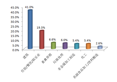 从行业类型来看,本月公众反映最集中的行业是建筑业及住宿餐饮娱乐业,分别占41%和19.3%,主要问题包括夜间施工噪声、餐饮油烟、生活娱乐噪声污染等。