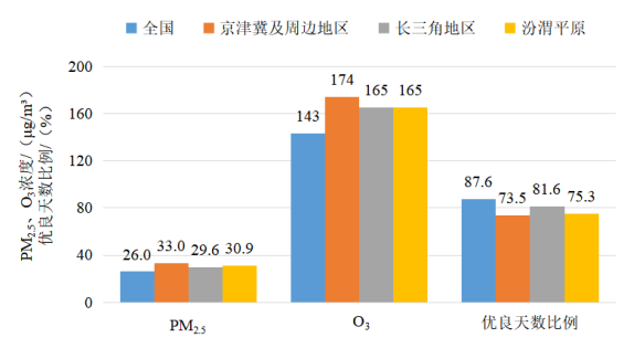 图3 2025年1—9月全国及重点区域空气质量比较