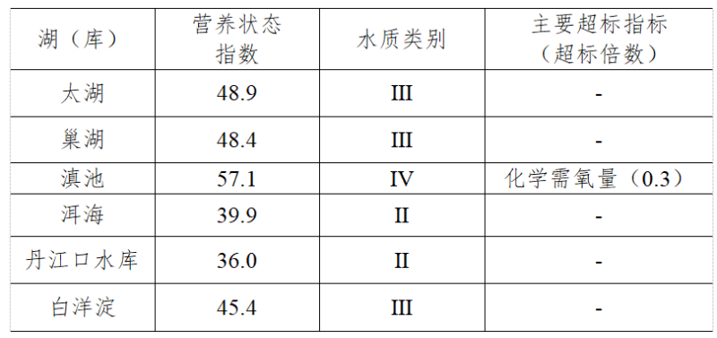重点湖(库)水质状况及营养状态