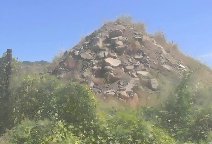 图2 2025年11月21日,督察组现场督察发现,北京市昌平区上口村废弃白云岩矿尚未开展生态修复,大量废渣碎石随山体随意堆放