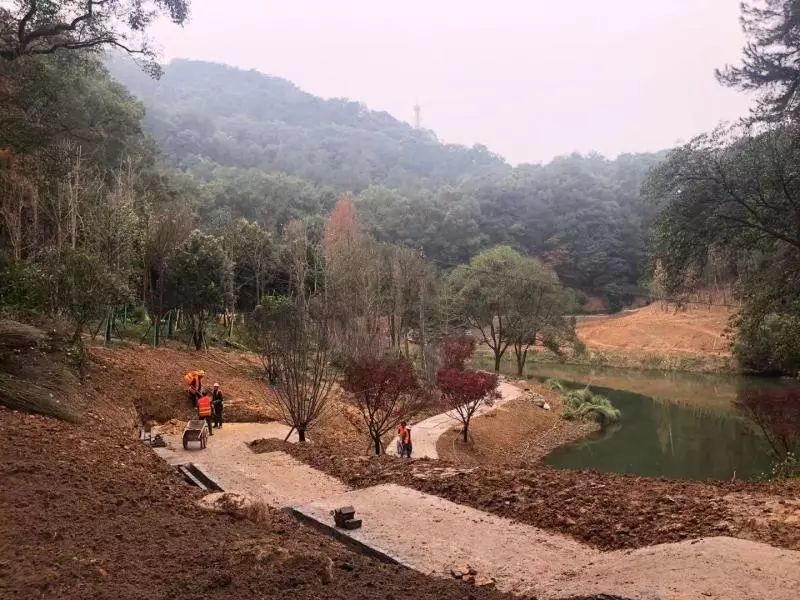 12月初,在缙云山黛湖畔,北青报记者看到施工人员正在为裸土复绿,移栽树木,四周的酒店也都已拆除完毕。