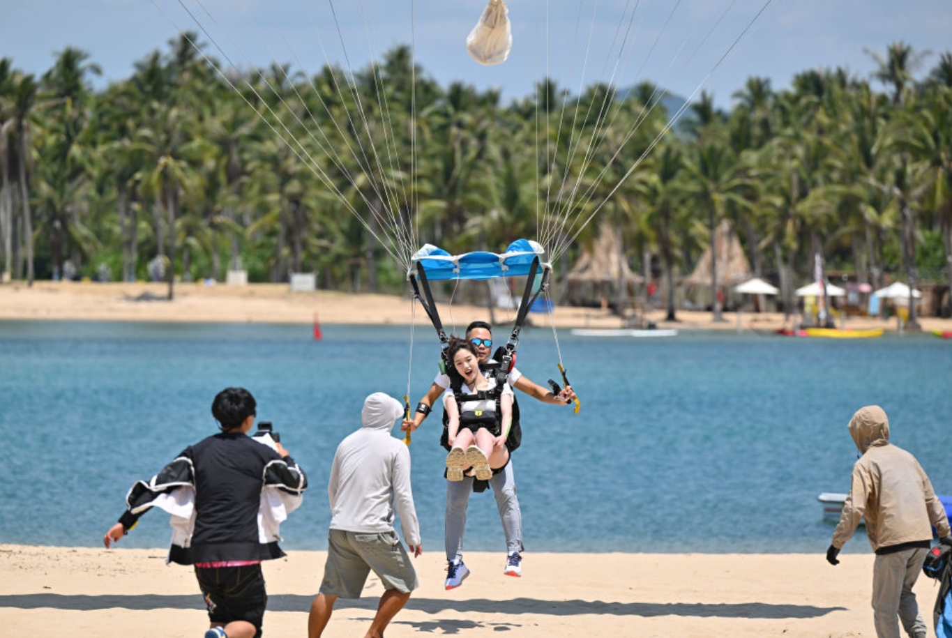5月2日,游客在三亚塔赫跳伞基地体验跳伞。新华社记者 郭程 摄