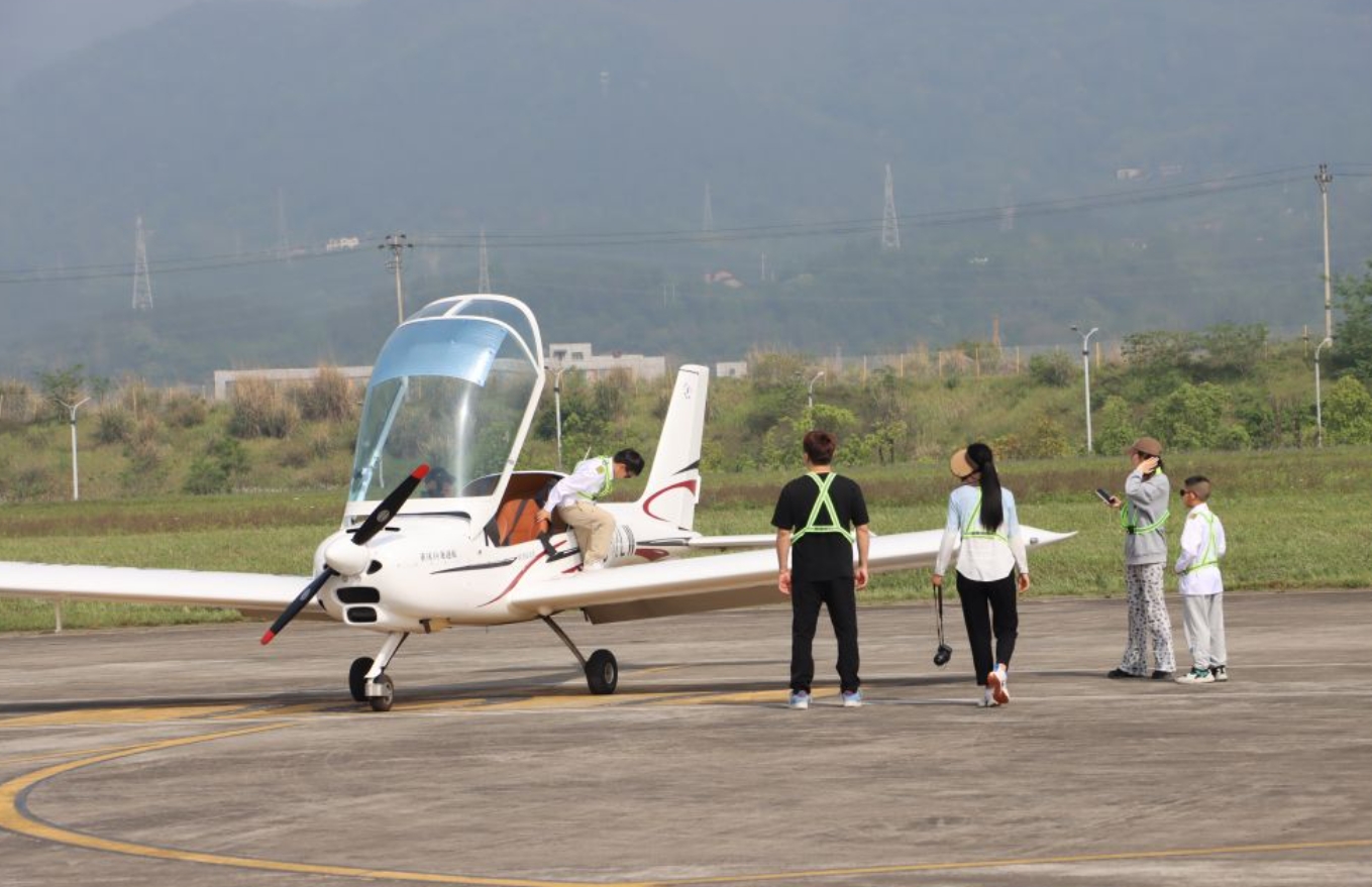 位于重庆两江新区的重庆龙兴通用机场内,重庆市民在进行低空飞行体验。(受访对象供图)