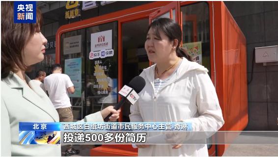 北京市西城区白纸坊街道市民服务中心主管 奇琳:第一次直播已经达到30万的观看量了,投递简历500多份,平时我们办一个招聘会可能投递简历最多也就有100多份。